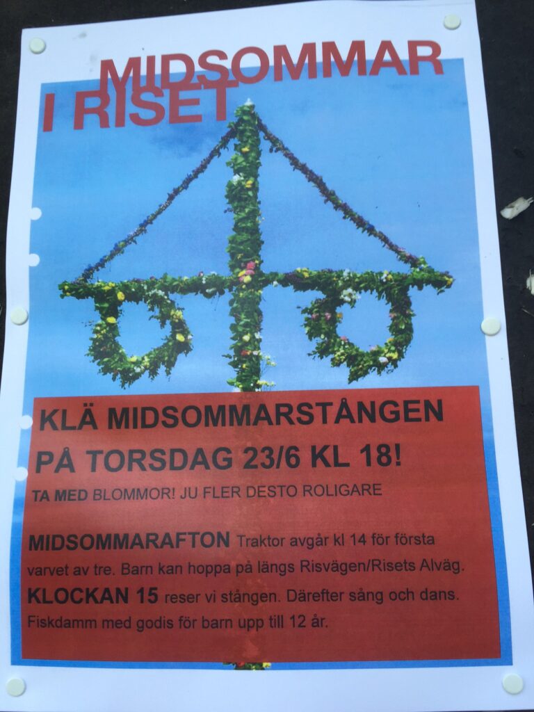 Välkommen på arbetsdag för Risets Väg- och Tomtägareförening. Med gemensamma krafter städar och röjer vi på Midsommarängen och runt om i området där det behövs. Ta med blandade redskap som till exempel krattor, grensaxar, kvastar, spadar, skottkärror. Tider Start kl 10.00, vid 12.00 serveras grillunch och slut vid 15-tiden på