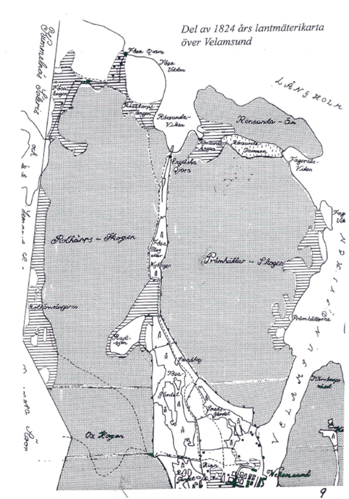 Utöver dessa egendomar fanns bara Lilla Björknäs som hospitalet ägde. Alla som bor i Riset har i sin fastighetsbeteckning Velamsund, men vet kanske inte att vårt villaområde är avstyckat från detta säteri. Men långt innan Emil Egnell köpte Velamsund 1880 och började avstyckningarna fanns det folk som bodde och arbetade i Riset. Riset nämns första gången 1697 då Frans Andersson begravs och 1787 är Riset ett skattetorp. Det fanns två kvarnar i vårt område och båda kallades Fösa kvarn. Det är Lars Bengdtsson som bygger en kvarn vid Båtvägen i Riset mellan år 1625 och 1627. Tillståndet fick han hur som helst 1625 eller tre år före att Regalskeppet Vasa förliser på strömmen den 10 september 1628.