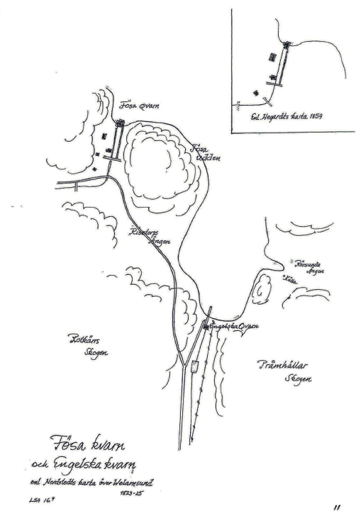 Anordning finns så man kan höja övre stenen och lätta på trycket och starta kvarnen. Man måste också smörja kvarnaxlarna och hjul Till det användes skogssniglar som, vi alla vet, är feta men inte så goda. Hjulkvarnar med stående kvarnhjul fordrar högre vattenflöde och var mer industriella kvarnar. En kvarn var på den tiden ett stort industriellt projekt och en stor investering. Ängen nedan Nacka Forum vid ICA Maxi heter ”Skvaltan”. Namnet kommer av en sjö och en kvarn med beskriven konstruktion som fanns vid sjöns utflöde. Till Fösa skvaltkvarn kom vattenkraften från Karbosjön, som då var minst två meter högre än idag, och gick över dagens Risets Alväg. Risets Alväg byggdes 1952 så till Lilla Ristorp kom man på en stig som gick in från det man så sent som 1947 kallade Skogsvägen. Nu heter den Risvägen. Lilla Ristorp hade strandtomt kan man säga och var flerdubbelt större än idag. Vårens smältvattenflod gjorde att sjön alltid steg över sina breddar vilket tomtägarforeningen och boende blev lidande av ända till slutet av 1979, men då var det godis. Den gode Bengtdson hade troligtvis gjort ett stort misstag i sitt projekt som han dyrt fick sona då Karbosjön till största delen låg i Kummelnäs. Det är högst troligt att det blev full cirkus mellan ägarna av Kummelnäs och Velamsund kring vattenfrågan. Säkert fick han böter och dryg hyra för det vatten han förbrukade och dessutom mala gratis till Kummelnäs. Skarn den som ger sig tänkte nog Lars och började med det som hans dotterson Augustin Leijonskjöld sedan fullföljer. Det var Bengdtsons dotter Brita Sneckenfelt, som i sitt giftemål med Mårten Augustinison fick sonen Augustin. Det var han som vallade in ett träsk som delvis avvattnades till Karbosjön, men som låg på Velamsunds marker. Detta projekt är, i sig, bevis nog att det hade gått snett i relationerna om Karbosjön. Det är i det närmaste en bragd att valla in ett träsk och då var det ett enormt arbete som skapade en sjö i skogen. Sjön kom att kallas Rudsjön. Velamsund har haft en Ruddamm med Rudor men i Rudsjön har det nog aldrig förekommit några sådana, trots namnet. Invallningen hade säkert två syften och det andra var att skapa Fösa äng av det träsk som Rudsjön skapat. Invallningen kan ses än i dag. Vägen, eller rättare sagt skogsstigen, därifrån till Riset och Velamsund kallades självklart for Rudsjövägen och det är vi sentida som bytt till Åbroddsvägen.