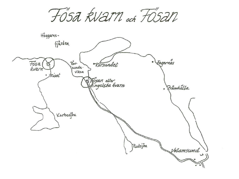 Vid Fösans utlopp vid dagens Vikingshillsväg, där skolbarnen i Backebo har sin lekplats vid bäckfåran, byggde Pontus de la Gardie år 1669 en ny skvaltkvarn, av engelsk modell, varför den till och från kallades för Engelska kvarn. Kvarnen blev enligt några minnesgoda, lågornas rov år 1870. Man kan fortfarande se grundstenarna till kvarnbyggnaden och många andra byggnader. Det finns de som menar att kvarnen är tre hundra år äldre, men för att bevisa det måste vi finna kvarnstenarna. En karta från år 1650 nämner dock Velamsund kvarn och det är troligt att en äldre bondkvarn byggts om enligt engelsk modell år 1669. Vem vet? Till kvarnen kom bönder från öarna med säd för malning. Oftast vår och höst när det fanns gott om vatten i magasinen. Före malningen, som var en typ av grovmalning, måste säden torkas for att inte mjölet ska ruttna. Det gjorde man i en Ria som fungerar som en vedeldad torrbastu. Malning och torkning tog sin lilla tid och bonden stannade kvar vid kvarnen om han inte hade nära hem eller kunde byta egen säd mot färdigmalt. Mjölnaren tog betalt i säd. Mjölnaren bodde på platsen och hade därför krog och natthärbärge i den lilla villan som vi äldre Riset-bor kallar ”fiskare Pärns”, men huset heter Lugnet.