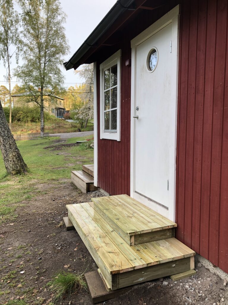 • Två nya fina trappsteg i trallvirke upp till de båda ingångarna på Ingas paviljong byggdes och lades på plats