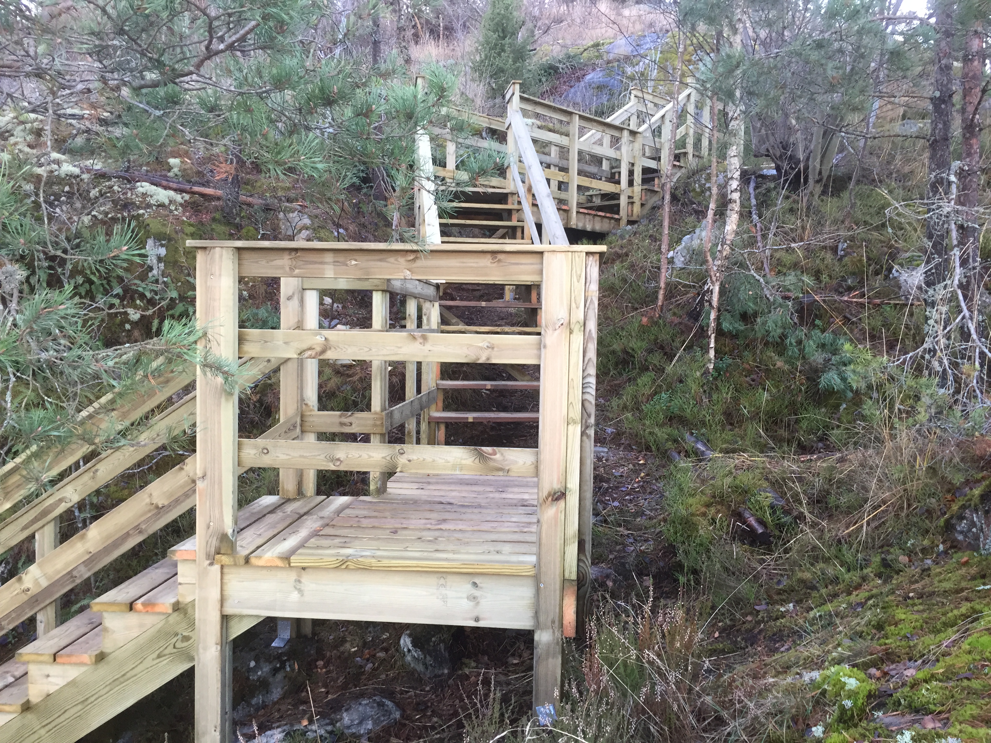 Tre deltrappor, bestående av totalt 24 trappsteg, med spång emellan har tillkommit i samma stil som de övriga delarna.